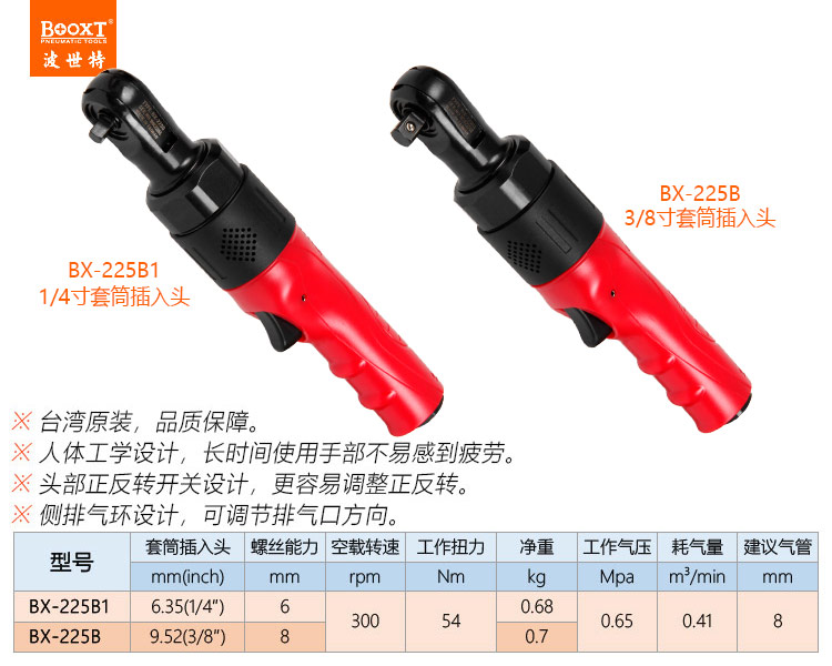 東莞市強勁五金工具有限公司提供臺灣BOOXT波世特品牌氣動工具,氣動棘輪扳手BX-225B1廠家直銷,首件享特價。咨詢熱線:4008301980